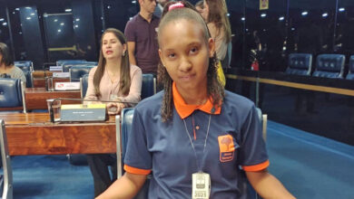 A jovem senadora do Tocantins, Jakelyne Gomes Tavares, do Colégio Estadual Doutor Pedro Ludovico Teixeira, de Porto Nacional, vive semana…