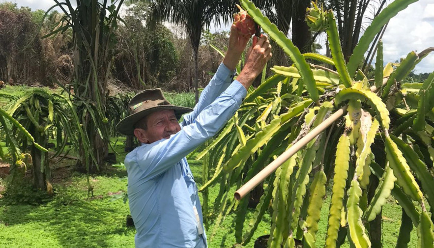 Morador do Rancho das Pitayas, próximo a Buritirana, distrito de Palmas, o produtor João Gomes Gontijo, de 67 anos, trabalha desde de 2019 com o cultivo da pitaya. A atividade, que seria apenas terapêutica para tratamento de saúde, fez com que ele enxergasse uma nova oportunidade de negócio, o aproveitamento da fruta para a produção de sorvete.