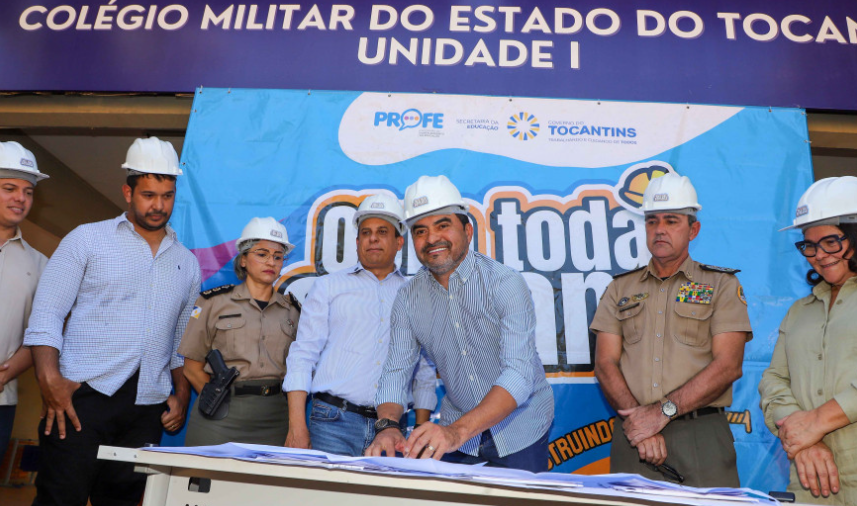 O governador do Tocantins, Wanderlei Barbosa, acompanhado do secretário de Estado da Educação, Fábio Vaz, e do comandante-geral da Polícia Militar do Tocantins (PMTO), coronel Márcio Antônio Barbosa, assinou, nesta segunda-feira, 21, a Ordem de Serviço para reforma do Colégio Militar do Estado do Tocantins – Unidade I, localizada em Palmas. A obra representa um investimento de R$ 3,054 milhões e integra o projeto Obra toda semana: transformando escolas, construindo futuros, desenvolvido pela Secretaria de Estado da Educação (Seduc), por meio do Programa de Fortalecimento da Educação (Profe).