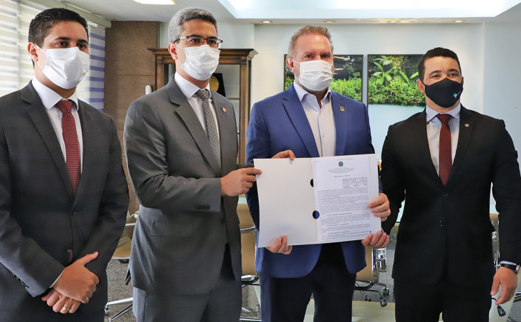 O governador do Estado do Tocantins, Mauro Carlesse, e o superintendente do Patrimônio da União em Tocantins, Lúcio Silva Alfenas, assinaram na manhã desta segunda-feira, 27, o Termo de Aditamento que garante mais dois anos de prazo, para que seja construída a nova sede do Ministério Público Estadual do Tocantins (MPTO), em Gurupi. A sede será construída no Parque Filó Moreira e terá uma área construída de 1.500 m².