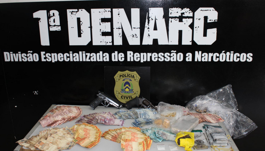 Duas pessoas presas, cerca de R$10 mil em espécie, uma arma de fogo, um simulacro, munições, celulares e uma expressiva quantidade de drogas. Esse é o resultado de mais uma ação de combate ao tráfico de drogas realizada pela Polícia Civil, por meio da 1ª Divisão Especializada de Repressão a Narcóticos (Denarc – Palmas), no início da tarde desta sexta-feira, 4, que culminou em mais um ponto de venda de drogas fechado.