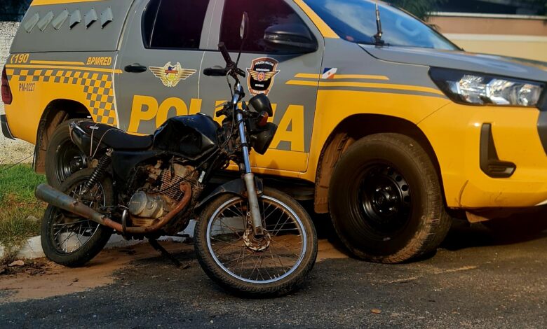 A equipe do BPMRED realizava patrulhamento na Rua Bom Jesus quando abordou uma motocicleta Honda Titan 150 sem placa. Após os procedimentos de identificação veicular, foi constatado que o veículo possuía registro de furto/roubo ocorrido em 19 de novembro de 2022, na cidade de Araguatins.