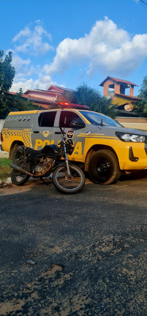 A equipe do BPMRED realizava patrulhamento na Rua Bom Jesus quando abordou uma motocicleta Honda Titan 150 sem placa. Após os procedimentos de identificação veicular, foi constatado que o veículo possuía registro de furto/roubo ocorrido em 19 de novembro de 2022, na cidade de Araguatins.