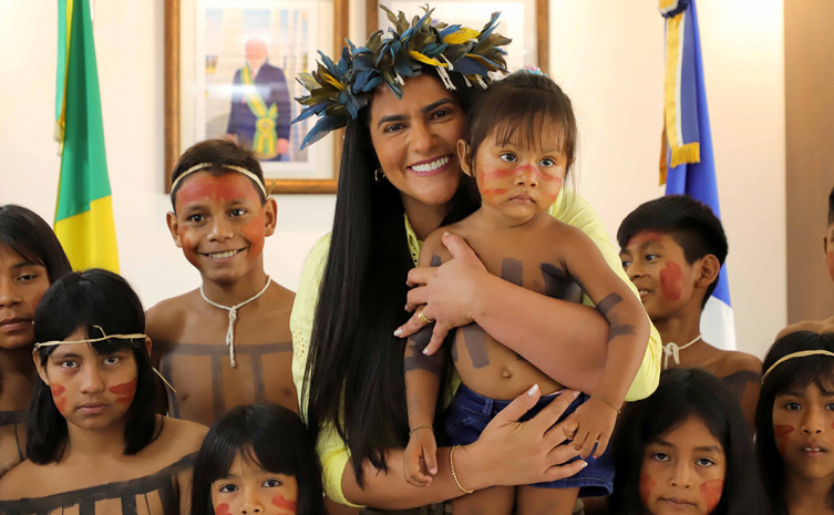 Em comemoração ao Dia dos Povos Indígenas, celebrado neste 19 de abril, a primeira-dama do Estado do Tocantins e secretária Extraordinária de Participações Sociais, Karynne Sotero, deu início ao projeto Portas Abertas recebendo um grupo de adultos e crianças da etnia Xerente, de Tocantínia, no Palácio Araguaia Governador José Wilson Siqueira Campos.