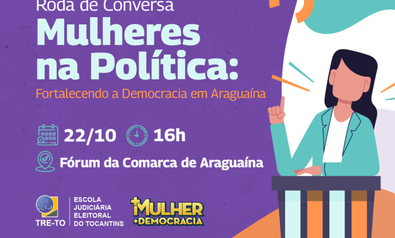 A roda de conversa “Mulheres na Política: Fortalecendo a Democracia” acontece nesta quarta-feira, 22, no Fórum da Comarca de Araguaína. A ação é parte da Semana da Mulher, promovida pelo programa +Mulher +Democracia da Justiça Eleitoral do Tocantins, que teve início nesta segunda-feira, 20.